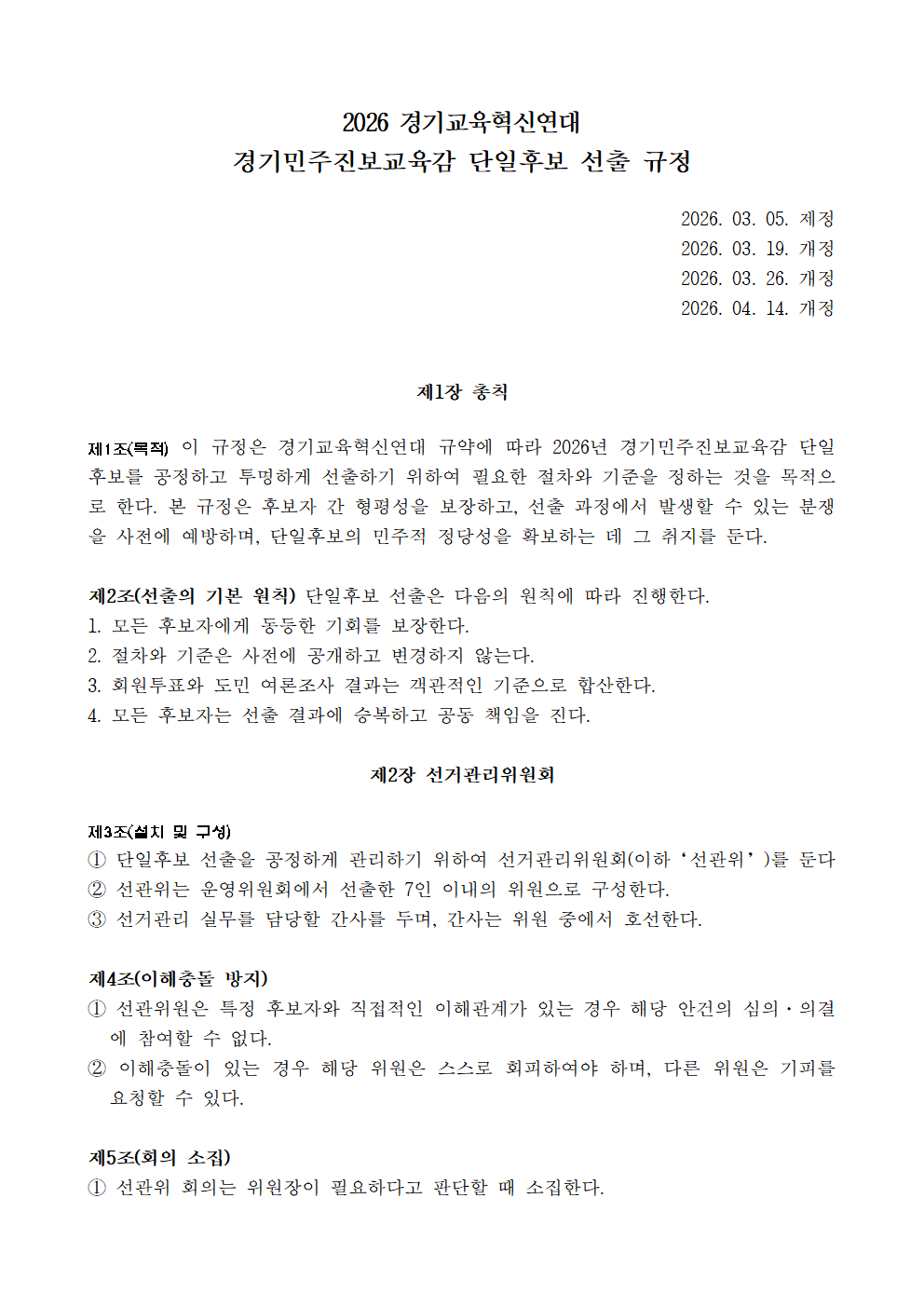 2026 경기교육혁신연대 경기민주진보교육감 단일후보 선출 규정