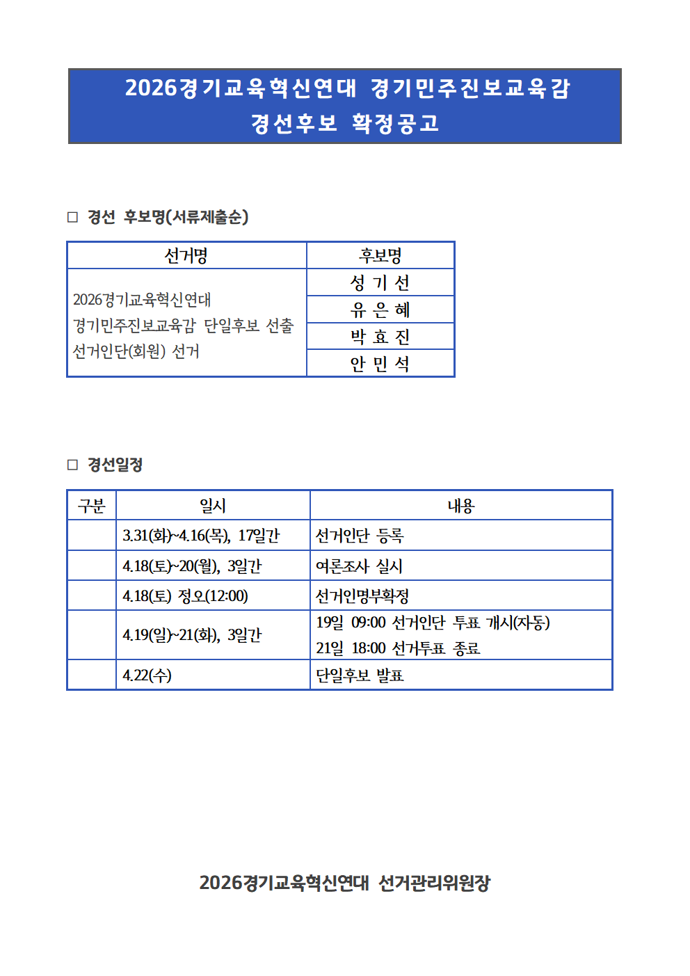 [후보자 확정공고]